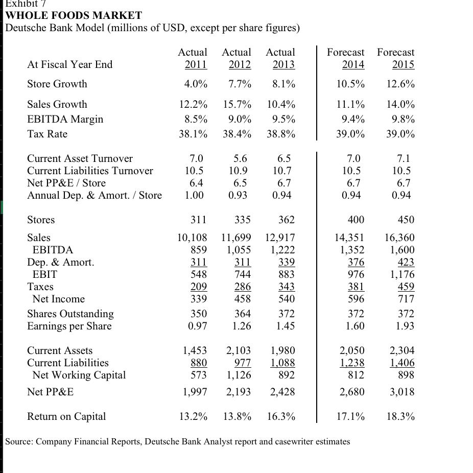 . The Deutsche Bank Report The latest numbers coming out of Whole Foods Market Inc. Students evaluate the associated financial ratios with the forecast to ascertain whether the industry dynamics and company strategy are consistent with the forecast. The Deutsche Bank Report FBE 421 Question 1.